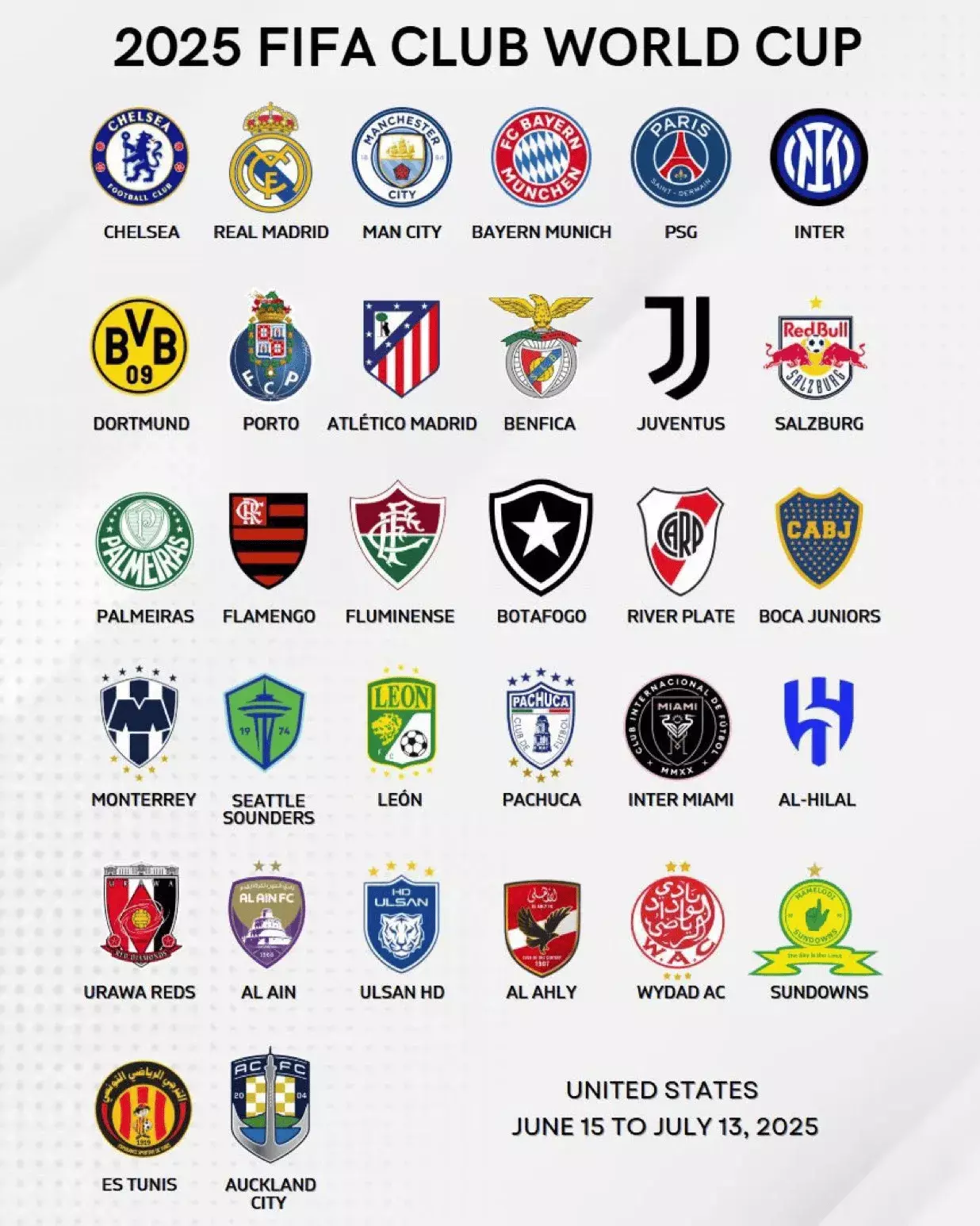 跟着南好意思摆脱者杯决赛以博塔弗戈夺冠告终,2025年世俱杯的32支参赛球队也仍是一起笃定。小组赛抽签庆典将于北京时辰12月6日2:00在迈阿密举行。